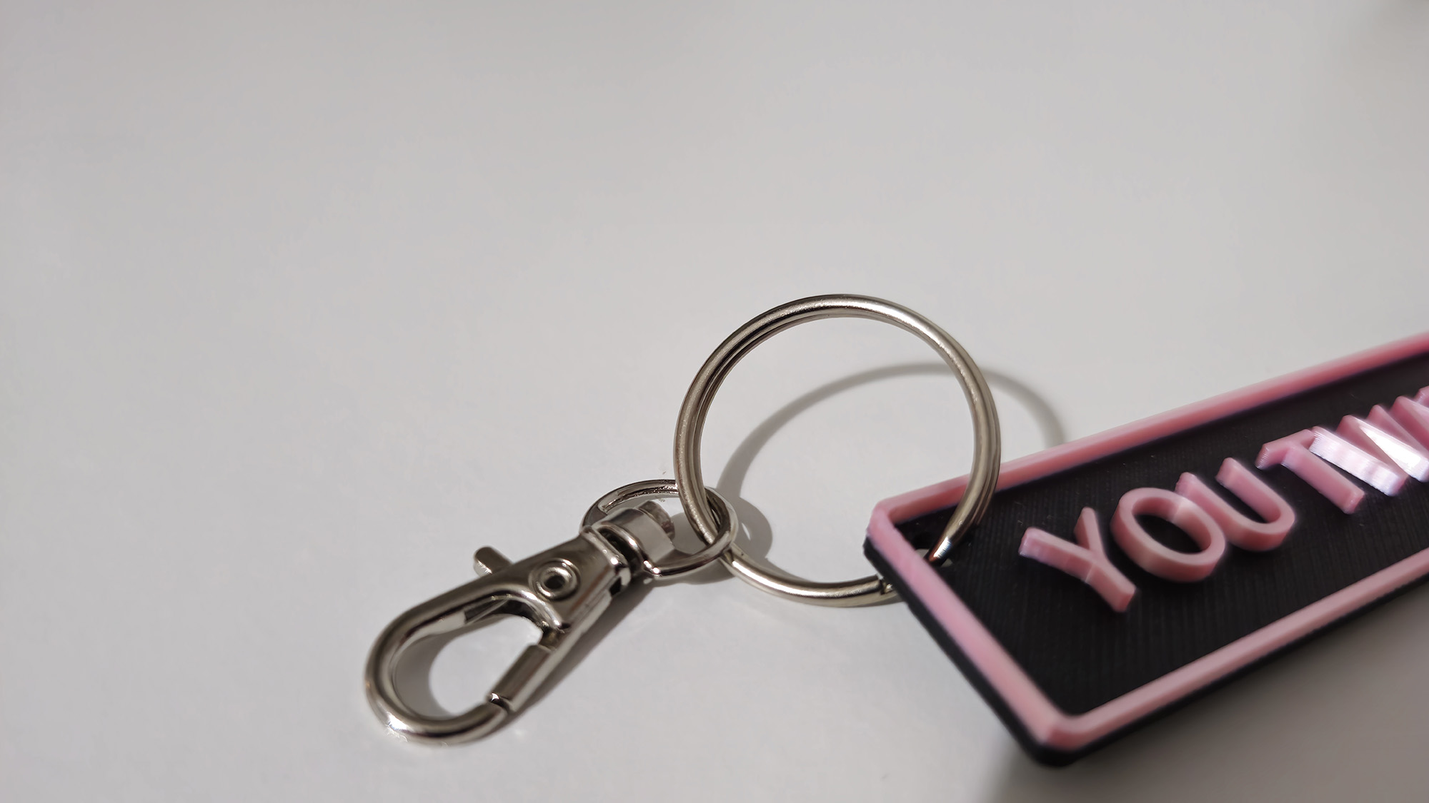 The 3D Printed Keyring is approx 75mm x 22mm x 4mm