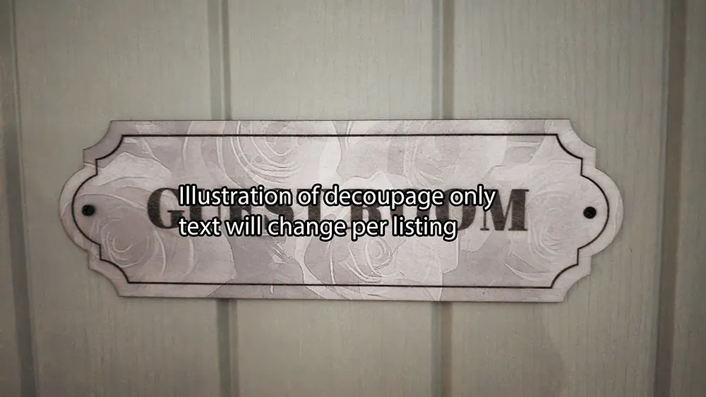 A beautiful plain wood or decoupaged plaque in a floral design - subtle and homely. This sign will add a classy touch to your Bedroom, Guest Room / Spare Bedroom door and is engraved with "Guest Room" in a formal font and will add a touch of country style to your space.