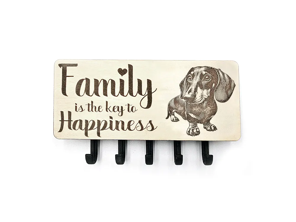 Keep your keys organized with this wall mounted key hook, choose your own picture whether it be dog breed, wildlife, gardening and more, choose one of our quotes or use your own. The rectangular shape of the CraftyBunny key ring holder measures 22cm in width and 9.5cm in height, with a 2.8cm depth. The item is designed for easy installation (2x screws and plugs - not supplied).