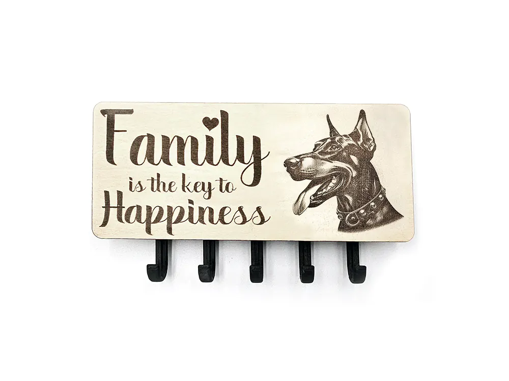 Keep your keys organized with this wall mounted key hook, choose your own picture whether it be dog breed, wildlife, gardening and more, choose one of our quotes or use your own. The rectangular shape of the CraftyBunny key ring holder measures 22cm in width and 9.5cm in height, with a 2.8cm depth. The item is designed for easy installation (2x screws and plugs - not supplied).