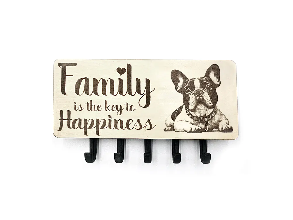 Keep your keys organized with this wall mounted key hook, choose your own picture whether it be dog breed, wildlife, gardening and more, choose one of our quotes or use your own. The rectangular shape of the CraftyBunny key ring holder measures 22cm in width and 9.5cm in height, with a 2.8cm depth. The item is designed for easy installation (2x screws and plugs - not supplied).