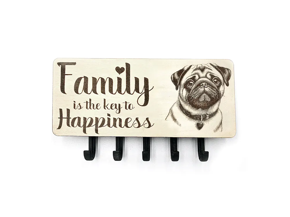 Keep your keys organized with this wall mounted key hook, choose your own picture whether it be dog breed, wildlife, gardening and more, choose one of our quotes or use your own. The rectangular shape of the CraftyBunny key ring holder measures 22cm in width and 9.5cm in height, with a 2.8cm depth. The item is designed for easy installation (2x screws and plugs - not supplied).