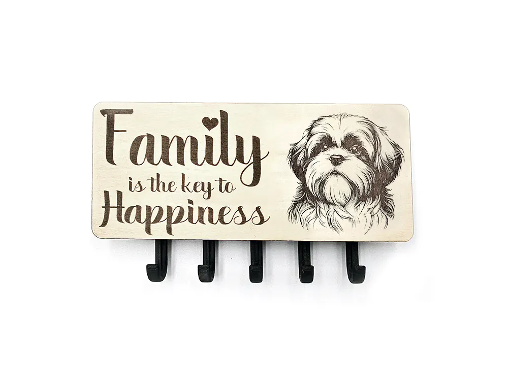 Keep your keys organized with this wall mounted key hook, choose your own picture whether it be dog breed, wildlife, gardening and more, choose one of our quotes or use your own. The rectangular shape of the CraftyBunny key ring holder measures 22cm in width and 9.5cm in height, with a 2.8cm depth. The item is designed for easy installation (2x screws and plugs - not supplied).