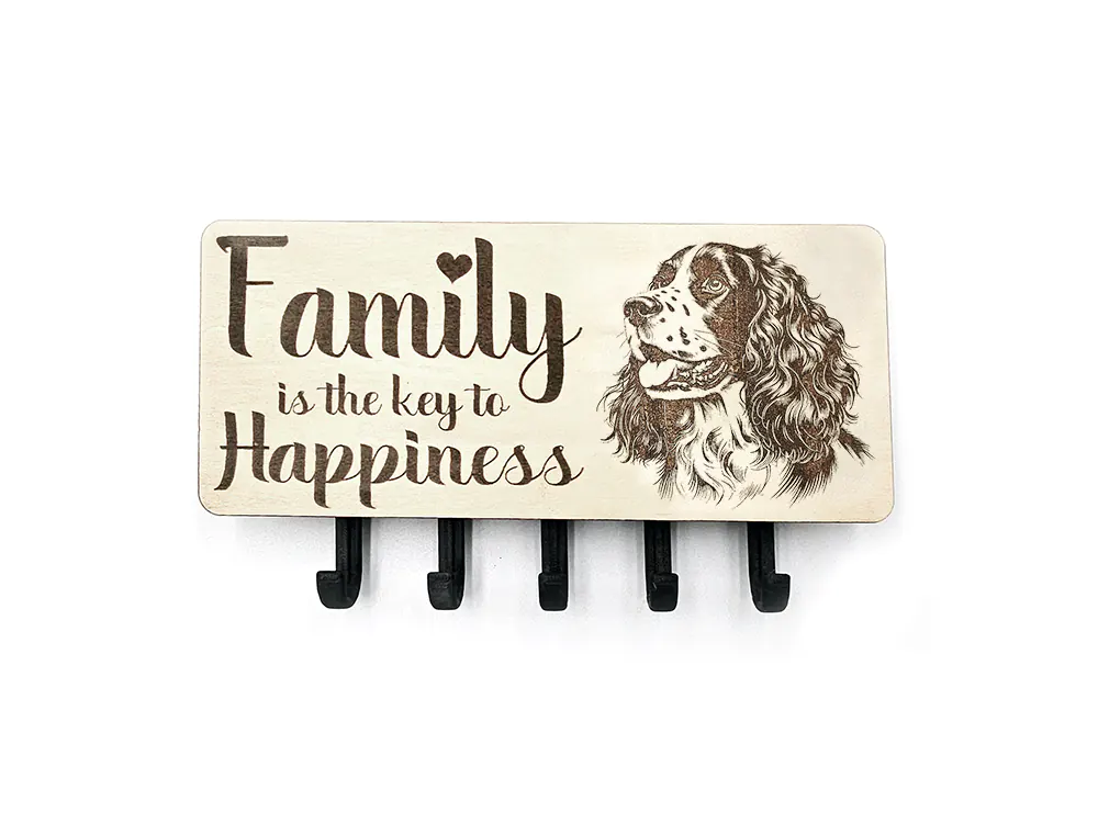 Keep your keys organized with this wall mounted key hook, choose your own picture whether it be dog breed, wildlife, gardening and more, choose one of our quotes or use your own. The rectangular shape of the CraftyBunny key ring holder measures 22cm in width and 9.5cm in height, with a 2.8cm depth. The item is designed for easy installation (2x screws and plugs - not supplied).