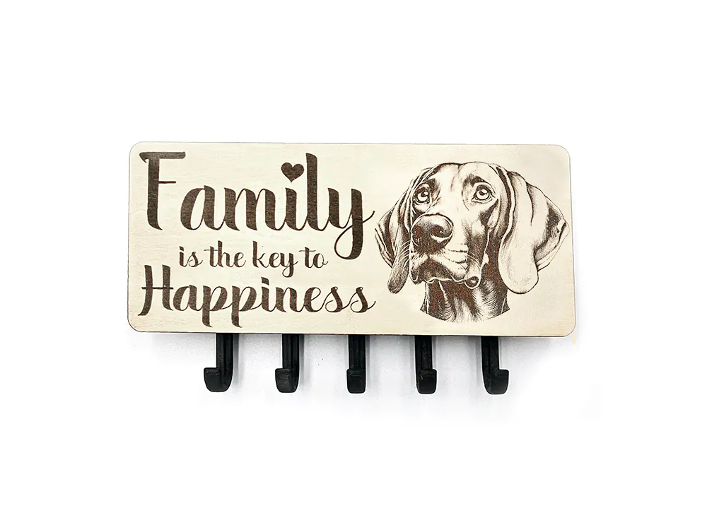 Keep your keys organized with this wall mounted key hook, choose your own picture whether it be dog breed, wildlife, gardening and more, choose one of our quotes or use your own. The rectangular shape of the CraftyBunny key ring holder measures 22cm in width and 9.5cm in height, with a 2.8cm depth. The item is designed for easy installation (2x screws and plugs - not supplied).