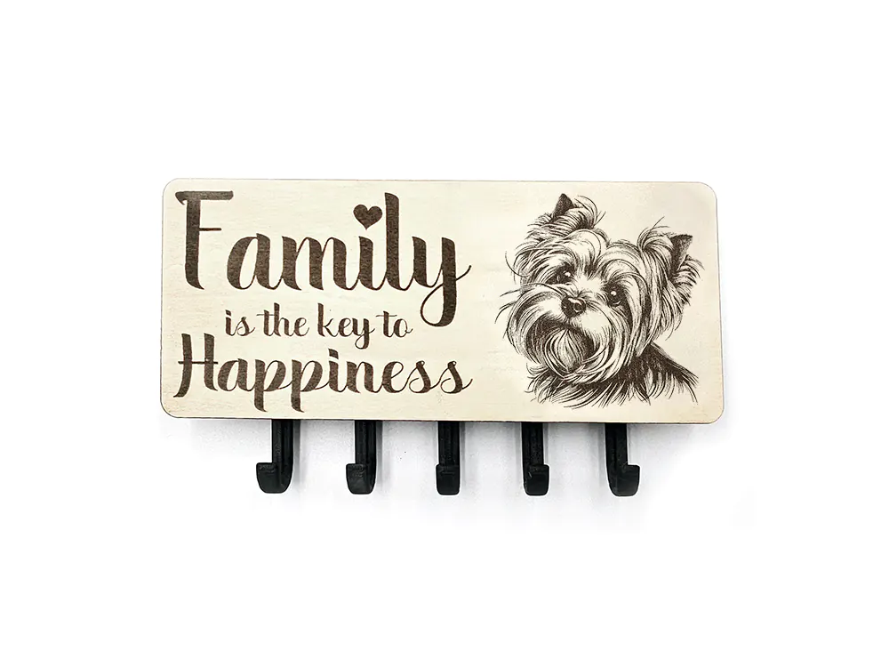 Keep your keys organized with this wall mounted key hook, choose your own picture whether it be dog breed, wildlife, gardening and more, choose one of our quotes or use your own. The rectangular shape of the CraftyBunny key ring holder measures 22cm in width and 9.5cm in height, with a 2.8cm depth. The item is designed for easy installation (2x screws and plugs - not supplied).