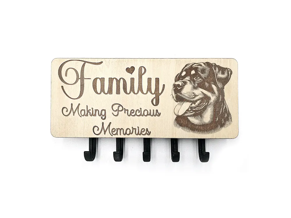 Keep your keys organized with this wall mounted key hook, choose your own picture whether it be dog breed, wildlife, gardening and more, choose one of our quotes or use your own. The rectangular shape of the CraftyBunny key ring holder measures 22cm in width and 9.5cm in height, with a 2.8cm depth. The item is designed for easy installation (2x screws and plugs - not supplied).