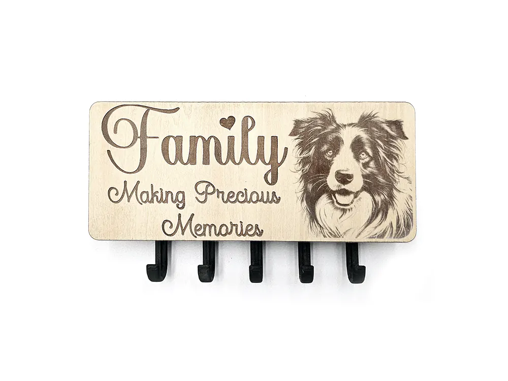 Keep your keys organized with this wall mounted key hook, choose your own picture whether it be dog breed, wildlife, gardening and more, choose one of our quotes or use your own. The rectangular shape of the CraftyBunny key ring holder measures 22cm in width and 9.5cm in height, with a 2.8cm depth. The item is designed for easy installation (2x screws and plugs - not supplied).
