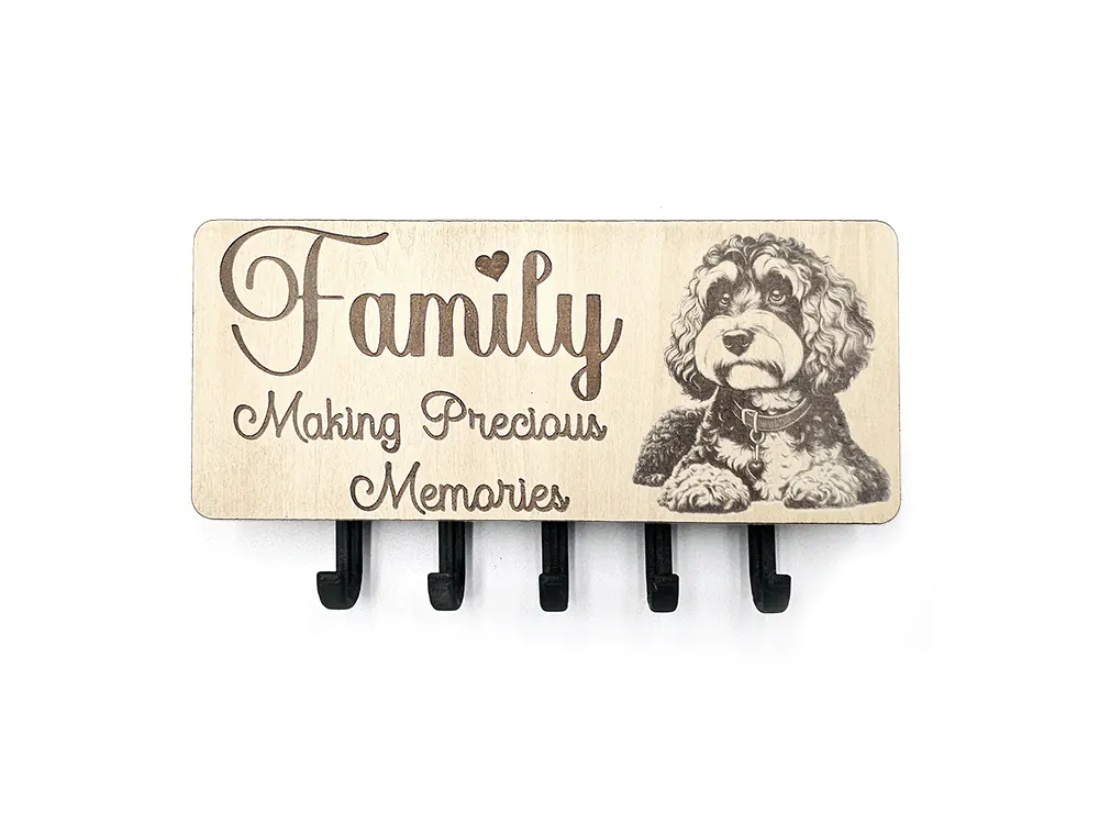 Keep your keys organized with this wall mounted key hook, choose your own picture whether it be dog breed, wildlife, gardening and more, choose one of our quotes or use your own. The rectangular shape of the CraftyBunny key ring holder measures 22cm in width and 9.5cm in height, with a 2.8cm depth. The item is designed for easy installation (2x screws and plugs - not supplied).