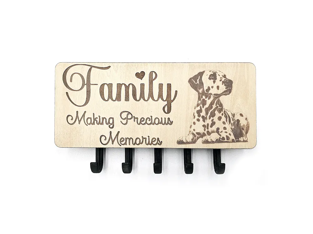 Keep your keys organized with this wall mounted key hook, choose your own picture whether it be dog breed, wildlife, gardening and more, choose one of our quotes or use your own. The rectangular shape of the CraftyBunny key ring holder measures 22cm in width and 9.5cm in height, with a 2.8cm depth. The item is designed for easy installation (2x screws and plugs - not supplied).