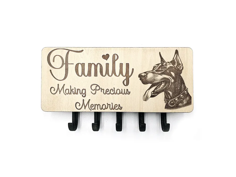 Keep your keys organized with this wall mounted key hook, choose your own picture whether it be dog breed, wildlife, gardening and more, choose one of our quotes or use your own. The rectangular shape of the CraftyBunny key ring holder measures 22cm in width and 9.5cm in height, with a 2.8cm depth. The item is designed for easy installation (2x screws and plugs - not supplied).