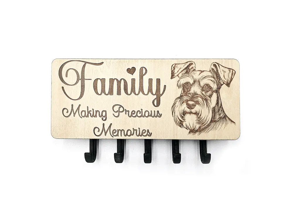 Keep your keys organized with this wall mounted key hook, choose your own picture whether it be dog breed, wildlife, gardening and more, choose one of our quotes or use your own. The rectangular shape of the CraftyBunny key ring holder measures 22cm in width and 9.5cm in height, with a 2.8cm depth. The item is designed for easy installation (2x screws and plugs - not supplied).