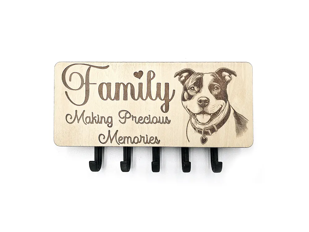 Keep your keys organized with this wall mounted key hook, choose your own picture whether it be dog breed, wildlife, gardening and more, choose one of our quotes or use your own. The rectangular shape of the CraftyBunny key ring holder measures 22cm in width and 9.5cm in height, with a 2.8cm depth. The item is designed for easy installation (2x screws and plugs - not supplied).