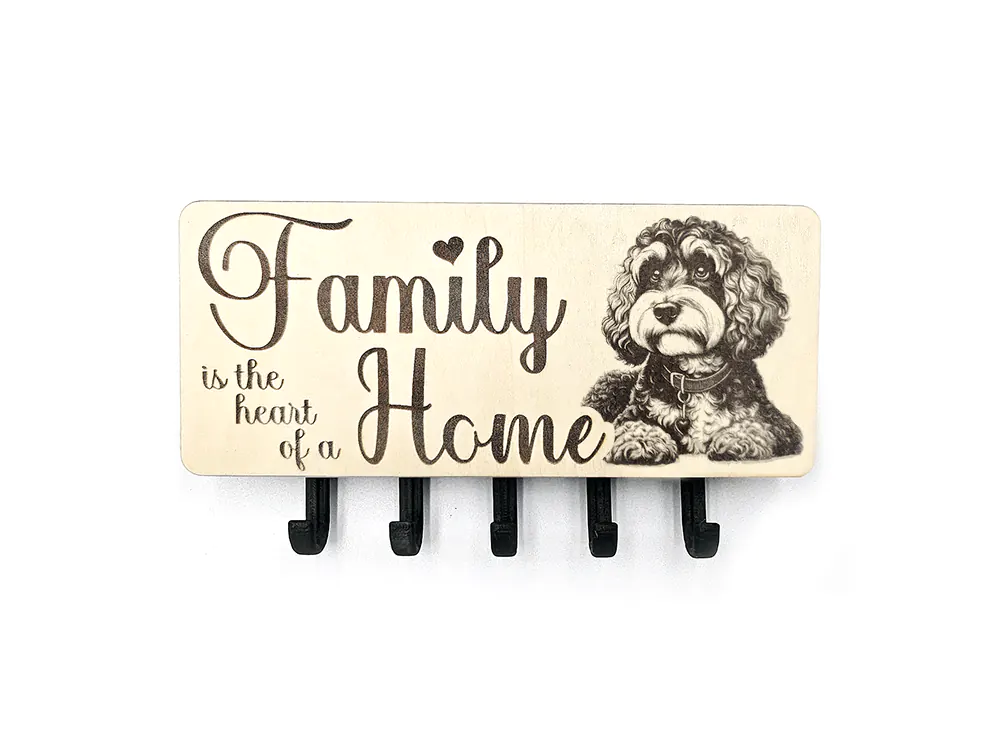 Keep your keys organized with this wall mounted key hook, choose your own picture whether it be dog breed, wildlife, gardening and more, choose one of our quotes or use your own. The rectangular shape of the CraftyBunny key ring holder measures 22cm in width and 9.5cm in height, with a 2.8cm depth. The item is designed for easy installation (2x screws and plugs - not supplied).