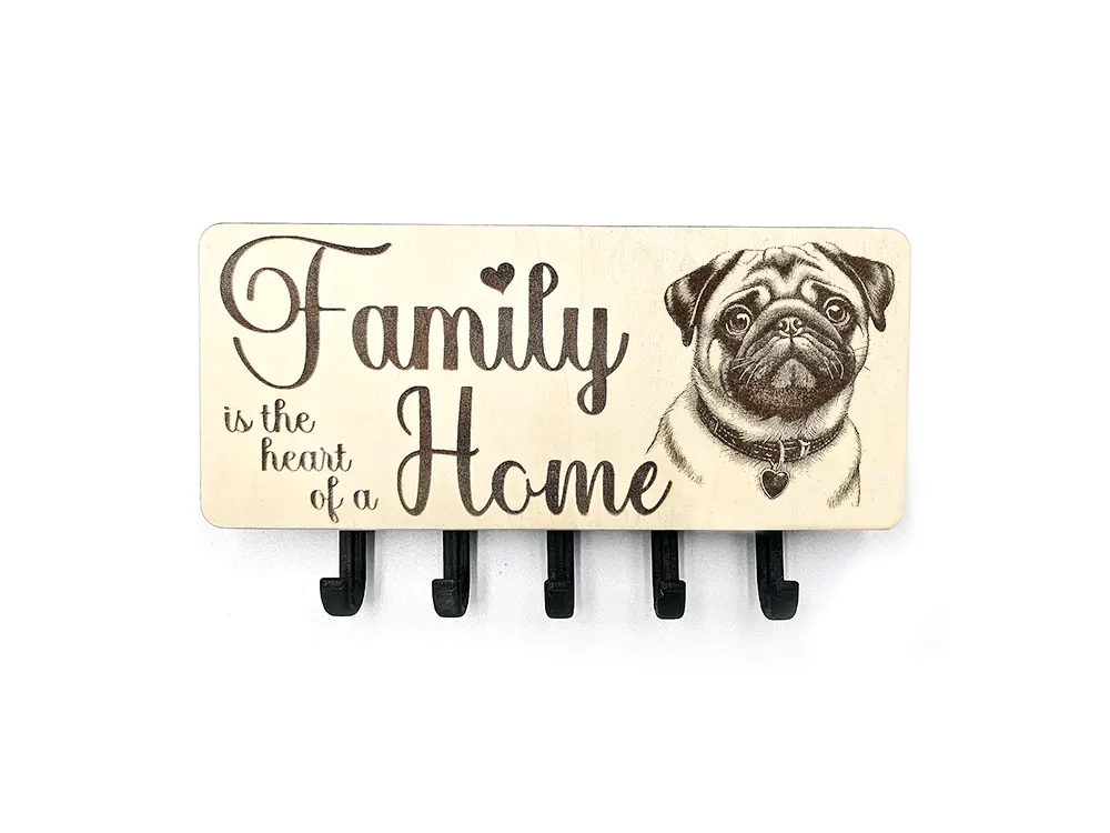 Keep your keys organized with this wall mounted key hook, choose your own picture whether it be dog breed, wildlife, gardening and more, choose one of our quotes or use your own. The rectangular shape of the CraftyBunny key ring holder measures 22cm in width and 9.5cm in height, with a 2.8cm depth. The item is designed for easy installation (2x screws and plugs - not supplied).