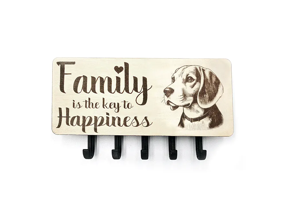 Keep your keys organized with this wall mounted key hook, choose your own picture whether it be dog breed, wildlife, gardening and more, choose one of our quotes or use your own. The rectangular shape of the CraftyBunny key ring holder measures 22cm in width and 9.5cm in height, with a 2.8cm depth. The item is designed for easy installation (2x screws and plugs - not supplied).