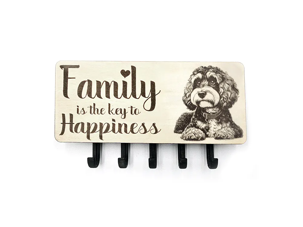 Keep your keys organized with this wall mounted key hook, choose your own picture whether it be dog breed, wildlife, gardening and more, choose one of our quotes or use your own. The rectangular shape of the CraftyBunny key ring holder measures 22cm in width and 9.5cm in height, with a 2.8cm depth. The item is designed for easy installation (2x screws and plugs - not supplied).
