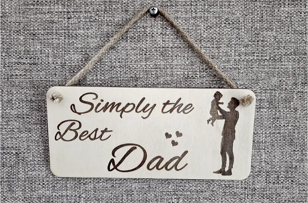 This hanging wall plaque from CraftyBunny is the perfect gift for dad and their family. It features the quote "Simply the best Dad" engraved on high quality plywood with 3 love hearts and a father lifting his child in to the air. Whether you're looking for a birthday or Father's Day gift or simply want to show your appreciation for your dad, this plaque is an excellent choice.