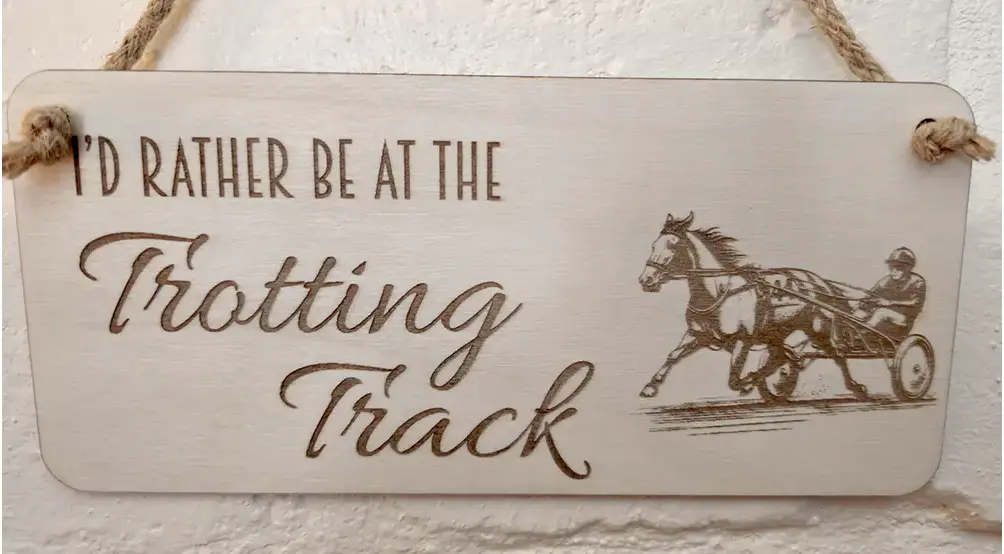This beautiful wooden plaque from CraftyBunny is a must-have for any horse racing / trotting / pony and trap racing enthusiast. With a trotting track theme, it features a rectangular shape making it perfect for hanging on a wall, door, or even in a mancave. The intricate engraving gives it a textured and decorative finish.