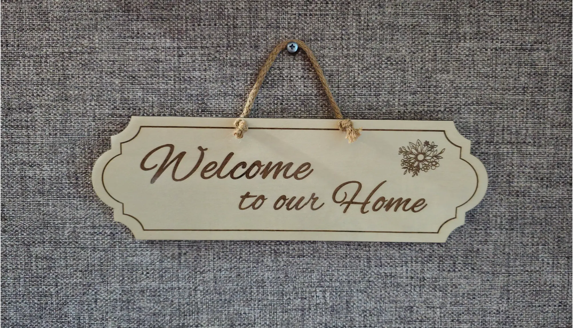 Add a warm touch to your entryway or porch with this charming Welcome to our Home wooden plaque. The rectangular sign features engraved lettering that spell out a welcoming message to guests. Hang it up in any room, from the foyer to the guestroom, or in the porch to add a touch of country style to your space.