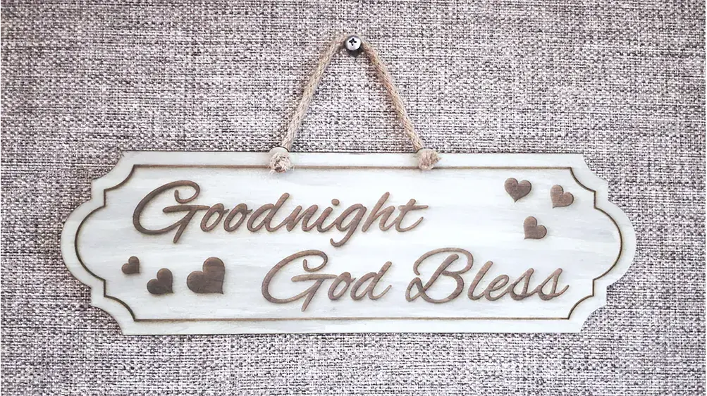 This high quality and beautifully engraved plaque has the message "Good Night God Bless" and some Hearts engraved around it.