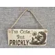 Featuring a laid back hedgehog enjoying life with a dandelion, the quote "I'm Cute but PRICKLY" is engraved on this rectangular plaque. The plaque is easy to mount on entryways, foyers, porches, kitchens, living rooms, lounges and dining rooms or can be desk mounted with the Freestanding options.